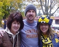 Walking around the beautiful, historic Ann Arbor neighborhood in the fall and catching up with Dave and Judy at the tailgate . . . of sandwiches and soda and longing for beer! Touring the golf course. Amazing to see people from Michigan and Michigan State partying together. Brad joins us! He totally rocks. I love that guy! And it was great to meet his friend Toonday (sp?), very, very nice! Wish I could have spent more time with them. The Michigan band coming onto the field. The game and — unfortunately — the moron state fan who kept yelling out “Bo is dead!” and dumb-ass stuff like that. Even the other state fans were not amused. Cheering the Wolverines, elated at the breaks they caught, just ecstatic to be there not caring about the loss.