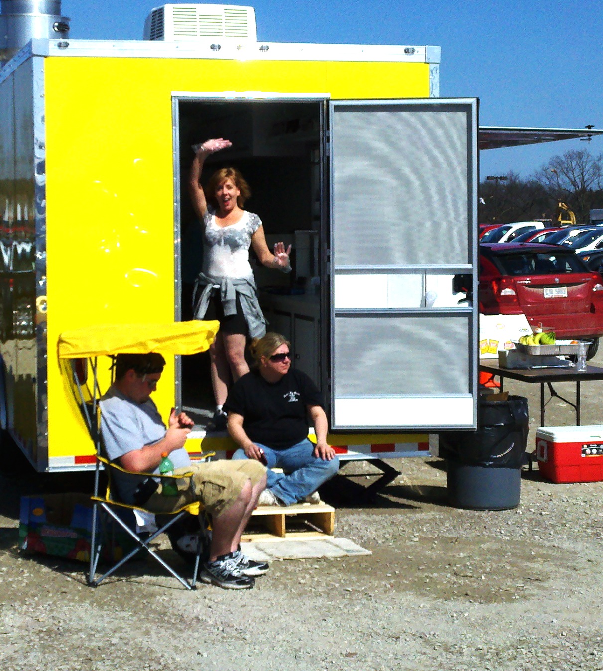 Folks here are close-knit and eager to help, as I got to be witness to volunteering Saturday, March 17, at Operation Barbecue Relief. Aunt Patti, sweet cousin Chase and I spent her birthday standing in a catering trailer, hands encased in plastic gloves, tearing through bags of buns, scooping up piping hot burgers and hot dogs, assembling and wrapping and stacking them in aluminum bins as Salvation Army and fire department reps drove through to haul hundreds upon hundreds of lunches to relief workers and the families whose houses had been damaged. Once in a while, weary couples and children would wander in and we fed them. As the hours passed, the pulled pork dinner entrees were close to fruition and more volunteers packed in. Our time was up, and we headed home, hands burning and feet aching and hearts forever grateful for the opportunity to help out in some small way.