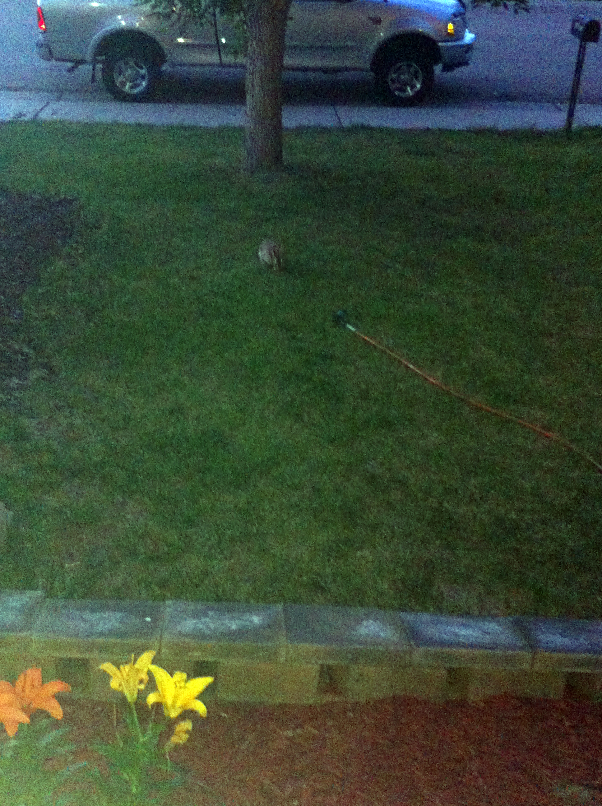 But then Peter was met by another, adult rabbit. Not his mom. Maybe a wannabe. Tsk, a bad influence. And across the street I could see more rabbits boldly wandering the yards and the streets and, although it was delightful, I am perfectly aware that nature is off balance here.
