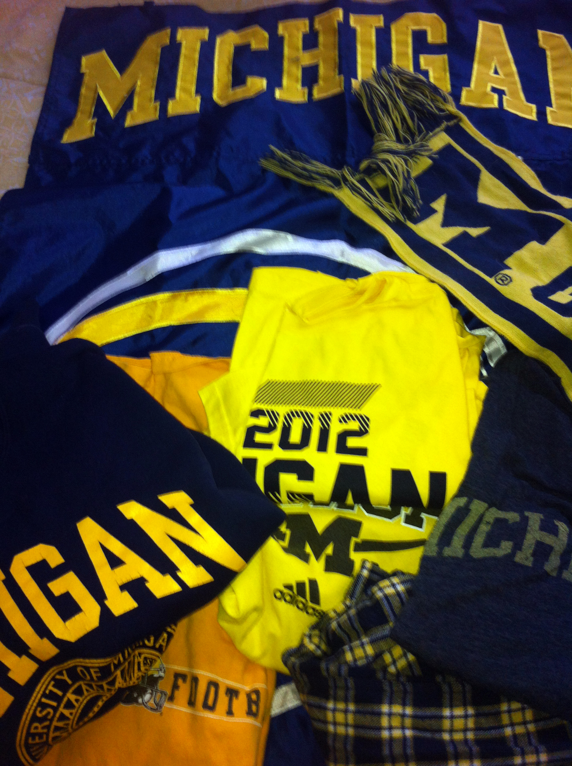 I am downright perplexed. Tomorrow is College Friday and I can’t for the life of me find any of my favorite Michigan or CU apparel. I’ve cleaned out my closet, dug through the laundry basket, dumped out my drawers, tackled the laundry room and they’re nowhere to be found. I guess it’s a good thing I have backups.