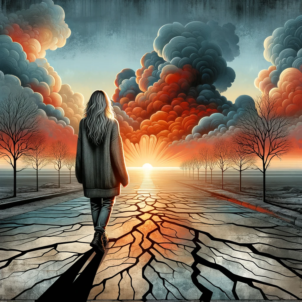 When I finally found my way through — navigating the tunnels of what seemed like an endless underground skatepark — Max and I ran up the northeasterly stairs to find ourselves in a field. The exit still visible behind and below us, we were in a plain of high-desert wildflowers that led to a forest. To the west, north and east there were in each direction three tornadoes of radiant colors of peach, pink and gray, spiraling, yes, but in a peaceful, welcoming and non-violent way.