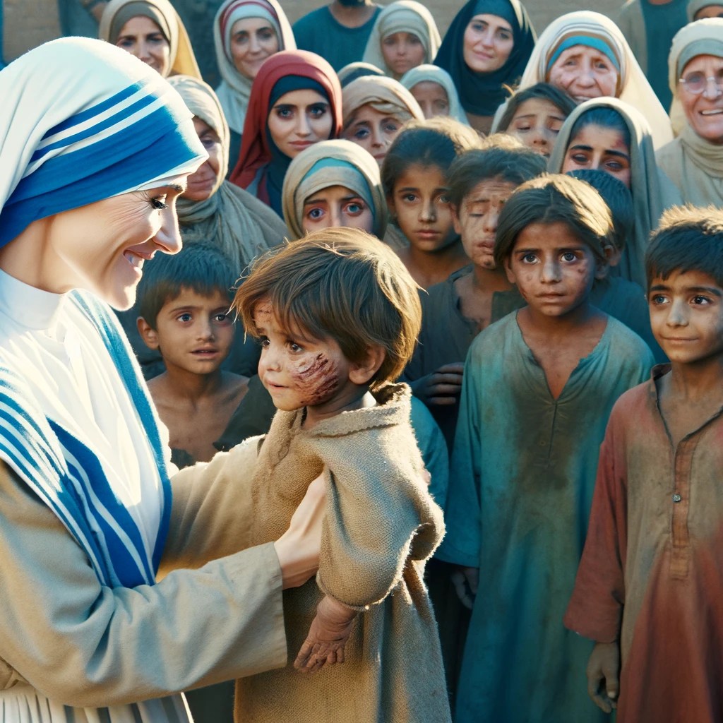 St./Mother Teresa and the other mothers and nuns asked the children if the ugly child could stay, or whether he should be sent away. She told them it was entirely up to them as a group to decide. I remember thinking, WTF? Why on God’s green, brown and blue Earth would she give those children the choice to reject this child in need?