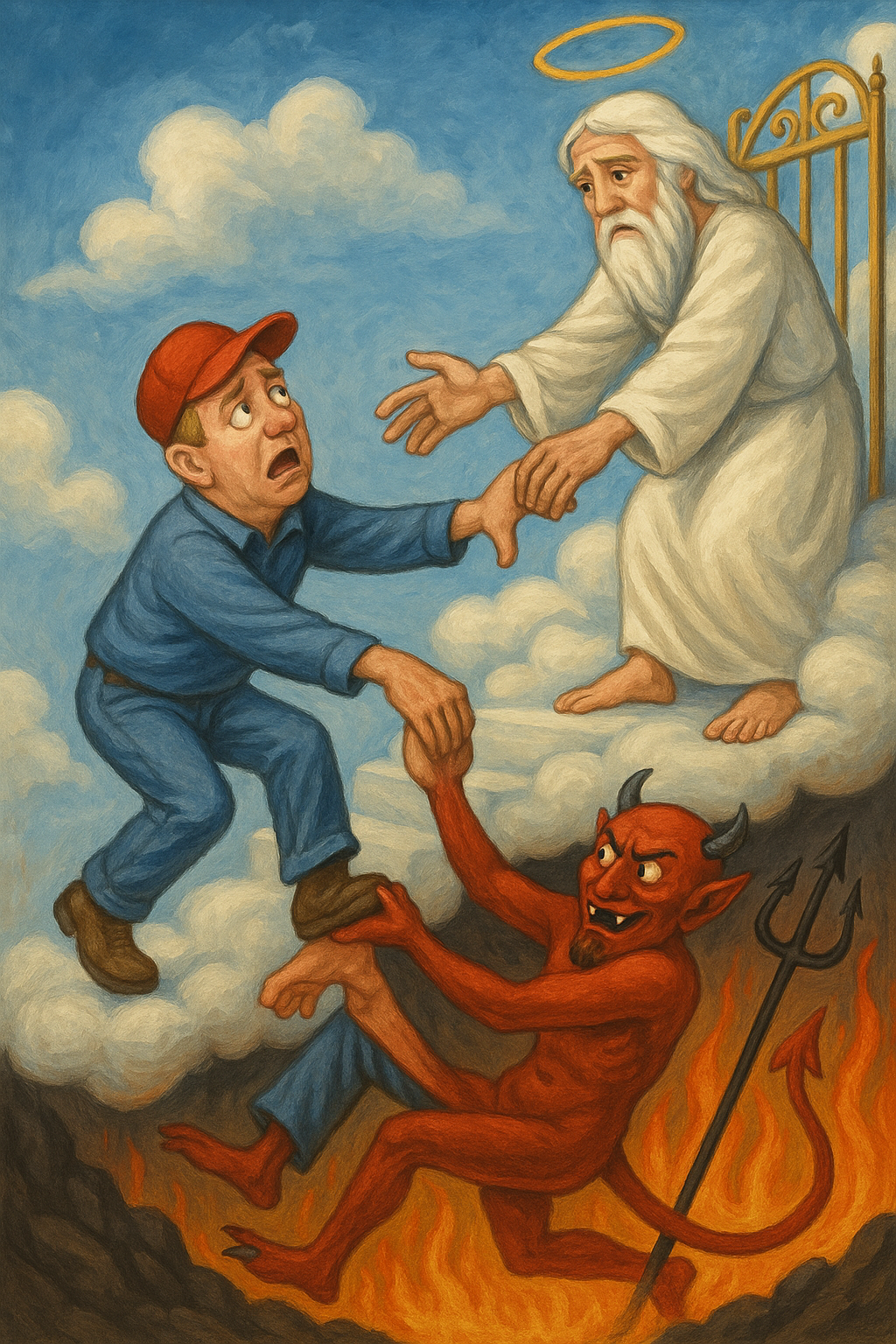 I’m having a difficult time passing up the reels on Facebook and TikTok that depict MAGAts awaiting judgement at the Pearly Gates. In a red hat, superior stance, chest puffed, they look to St. Peter in full anticipation of the glories of reaching a higher place as reward for the mistreatment, hate and judgement they have bestowed upon God’s children on Earth. Alas, in these chuckle-worthy reels, these revelers find they are assigned, well, elsewhere.